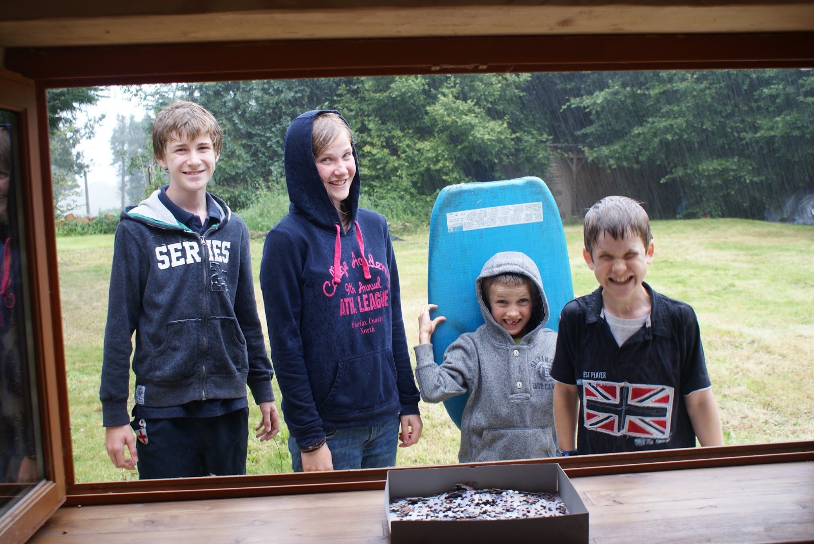 Tuesday 28th August. Mum and Dad, and Ken and Bev arrived! Within no time, my kids are dangling out of windows by ropes!! (And in Harry's case, with odd shoes on?!!)